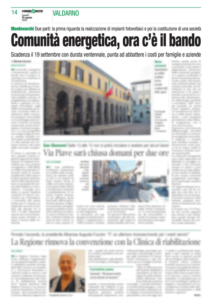 Lunedì 22 agosto è stato pubblicato il bando di gara per la realizzazione della Comunità Energetica nel comune di Montevarchi secondo il modello del Parteniariato pubblico Privato.